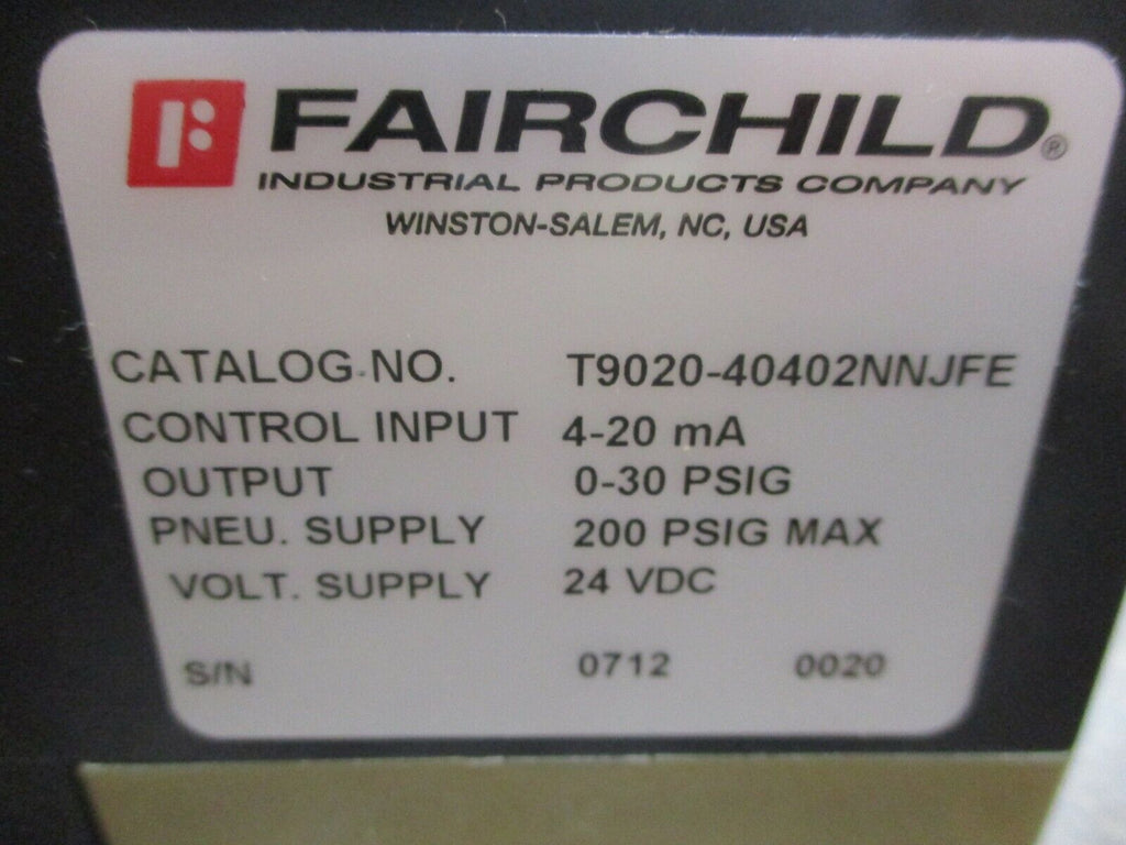 Fairchild T9000 Series Digital Electronic Pressure Controller T9020-40402NNJFE_x000D_ Condition: UsedMPN: T9020-40402NNJFEBrand: Fairchild Fairchild T9000 Series Digital Electronic Pressure Controller T9020-40402NNJFE Fairchild T9000 Series Digital Electronic Pressure Controller Part #: T9020-40402NNJFE Input:4-20mAOutput:0-30PSIGSupply:200PSIG Max24VDCUsedLOC 16H3-61 Fairchild T9000 Series Digital Electronic Pressure Controller Part #: T9020-40402NNJFE Input: 4-20mA Output: 0-30PSIG Supply: 200PSIG Max 24VDC Uséd LOC 16H3-61