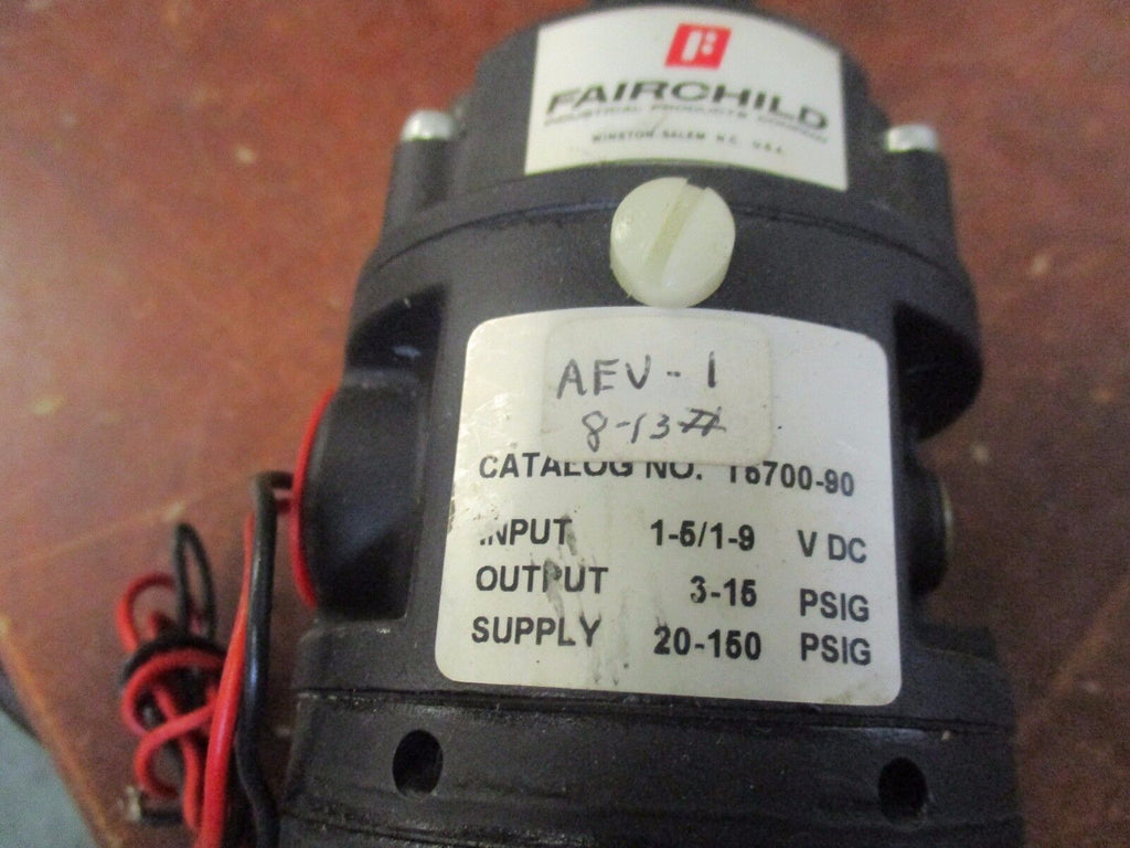Fairchild Transducer w/ Gauge T5700-90 Used_x000D_ Condition: UsedBrand: FairchildMPN: T5700-90Features: Gauge Fairchild Transducer w/ Gauge T5700-90 Used FairchildTransducer w/ GaugePart # T5700-90Input: 1-5/1-9 VDCOutput: 3-15 PSIGSupply: 20-150 PSIGUsedLOC 19H5-4 Fairchild Transducer w/ Gauge Part # T5700-90 Input: 1-5/1-9 VDC Output: 3-15 PSIG Supply: 20-150 PSIG Uséd LOC 19H5-4