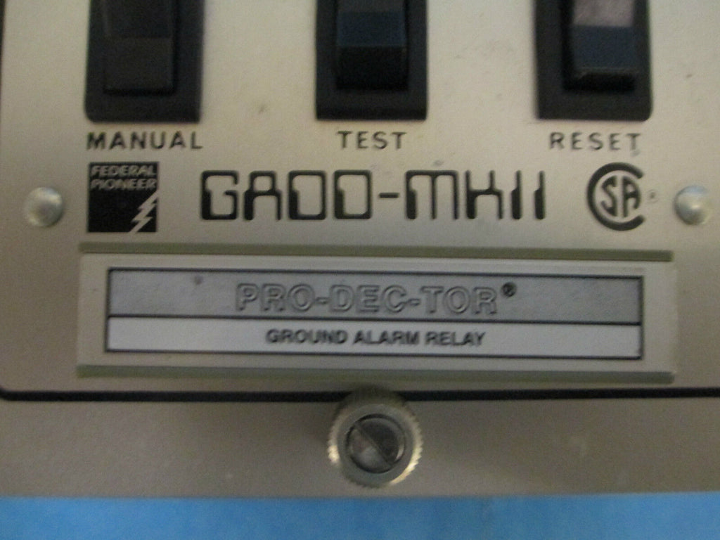 Federal Pioneer Ground Alarm Relay GAOO-MKII With DDR2-4 Used_x000D_ Condition: UsedBrand: Federal PioneerModel: GAOO-MKIIMPN: DDR2-4 Federal Pioneer Ground Alarm Relay GAOO-MKII With DDR2-4 Used Federal Pioneer Ground Alarm Relay Part # GAOO-MKII Type GA002-1 Dry Contacts 120VAC @ 5A 240VAC @ 2.5A 24VDC @ 5A Alarm Resistor Unit Part # DDR2-4 480V 3 Phase 3W 1A Used Loc AB7C2-1 Federal Pioneer Ground Alarm Relay Part # GAOO-MKII Type GA002-1 Dry Contacts 120VAC @ 5A 240VAC @ 2.5A 24VDC @ 5A Alarm Resistor Unit Part # DDR2-4 480V 3 Phase 3W 1A Uséd Loc AB7C2-1