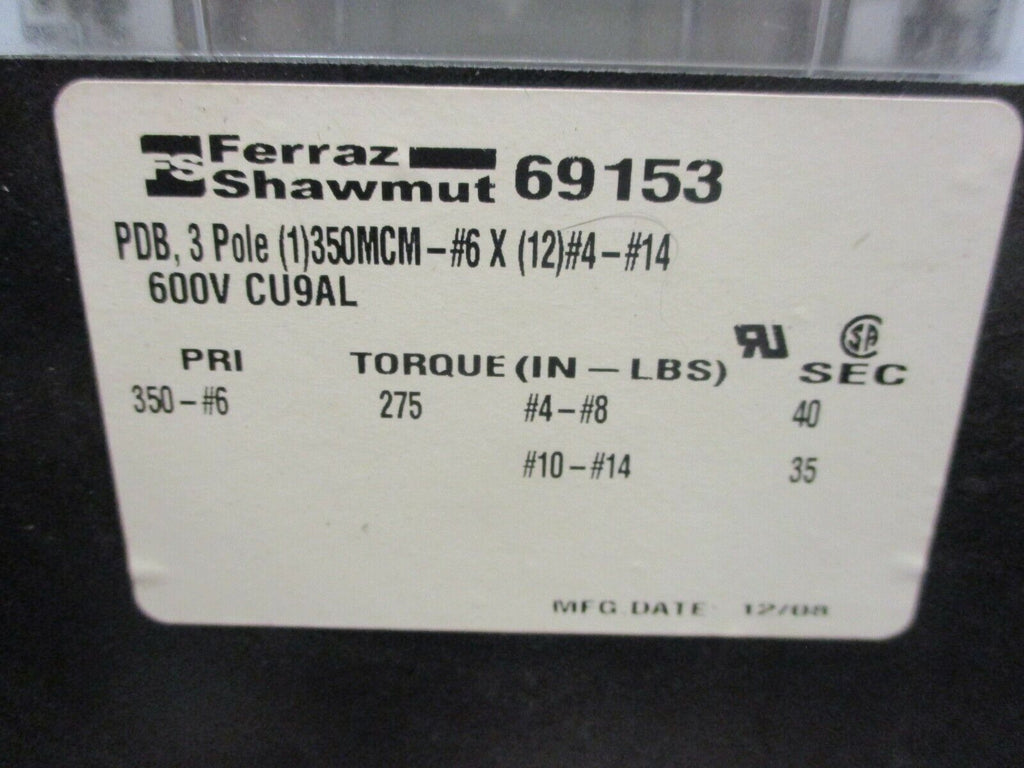 Ferraz Shawmut Power Distribution Black 69153 400A Used Condition: UsedMPN: 69153Brand: Ferraz Shawmut Ferraz Shawmut Power Distribution Black 69153 400A Used Ferraz Shawmut Power Distribution BlackPart #: 69153400A600VLine(1): 350-#6Load(12): #4-#8, #10-#14UsedLOC 25A1-12 Ferraz Shawmut Power Distribution Black Part #: 69153 400A 600V Line(1): 350-#6 Load(12): #4-#8, #10-#14 Uséd LOC 25A1-12