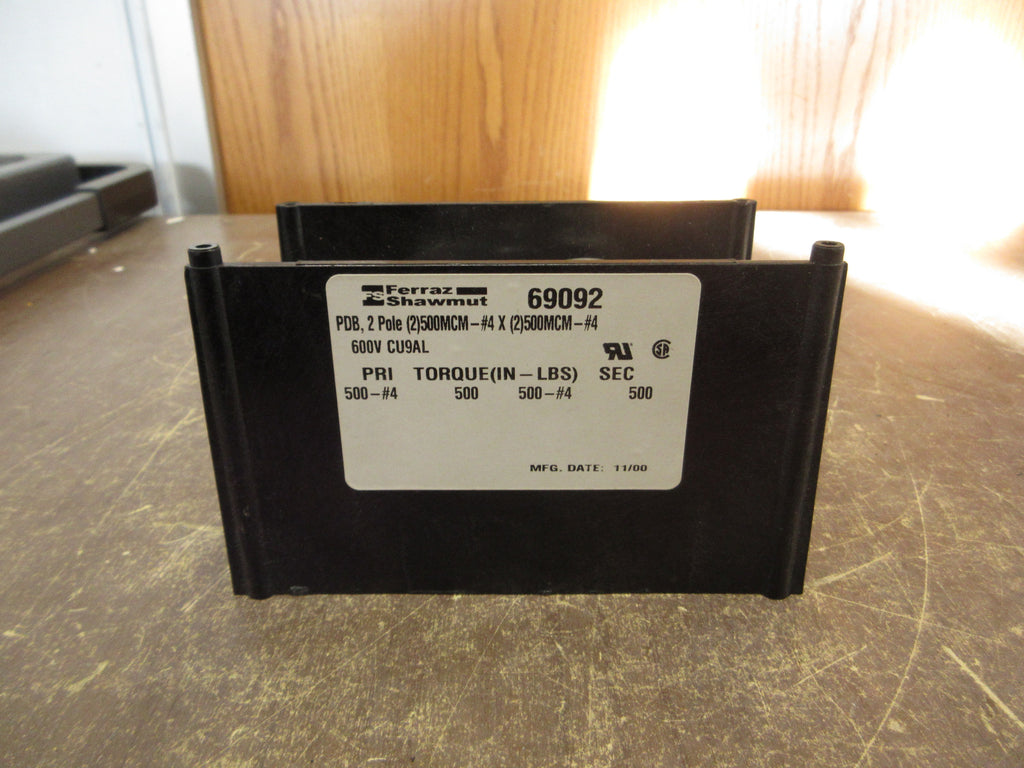 Ferraz Shawmut Power Distribution Block Part #: 69092 1P 600 V Line: 500-#4 Load: 500-#4 *Chipped Base* Used Loc: 59H2-25