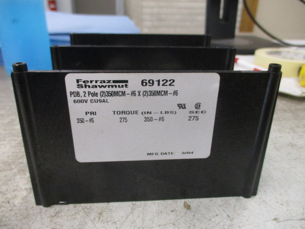 Ferraz Shawmut Power Distribution Block 69122 2P 600V Line: 350-#6 Load: 350-#6 Used LOC 56B4-2