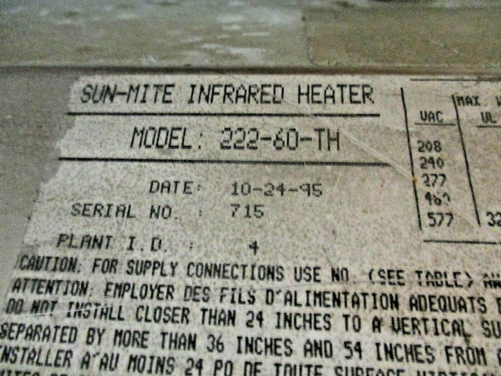 Fostoria Sun-Mite Electric Infrared Heater 222-A60-TH 3200W 208-577V 1Ph 60Hz