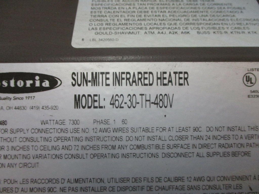 Fostoria Sun-Mite Infrared Heater 462-30-TH-480V 480V 7300W/7.3kW 1Ph 60Hz Used