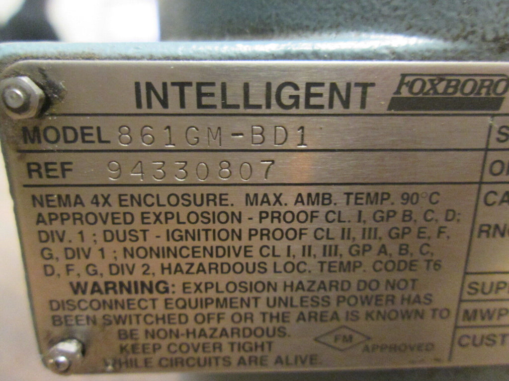 Foxboro Intelligent Transmitter 861GM-BD1 100PSIG Supply:12.5-42VDC Used