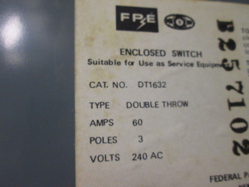 FPE Fusible Double Throw Safety Switch DT1632 60A 240V 3P New Surplus