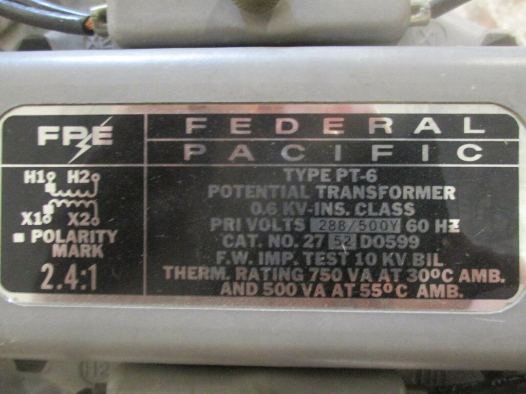 FPE Type PT-6 Potential Transformer 2752D0599 Ratio 2.4:1 Pri: 288/500V 60HZ