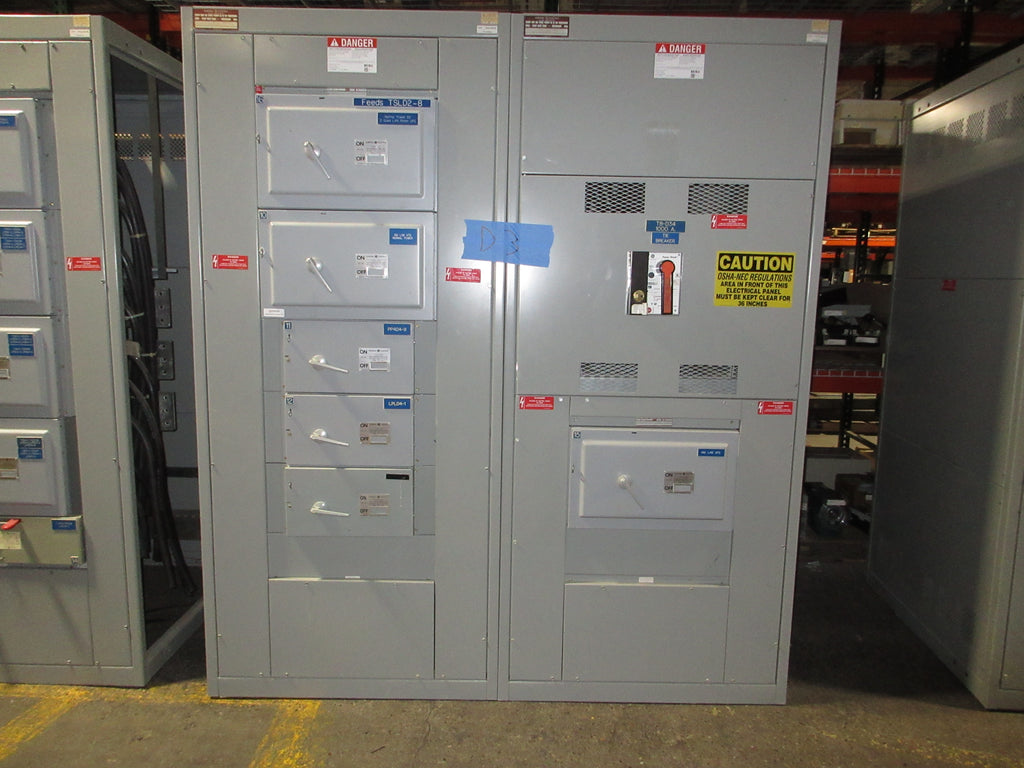 GE 3000A Main Tie Main Switch Gear Line Up Part #: TC3030SS 3000 A Main Breaker (11) 400A THFP Panelboard Switches (3) 200A THFP Panelboard Switches (2) 100A THFP Panelboard Switches (1) 1600A Tie Breaker, Part #: TC1616SS Dims: 240" x 72" x 96" Weighs: 10,000 LBS Used Loc: AB11-9015