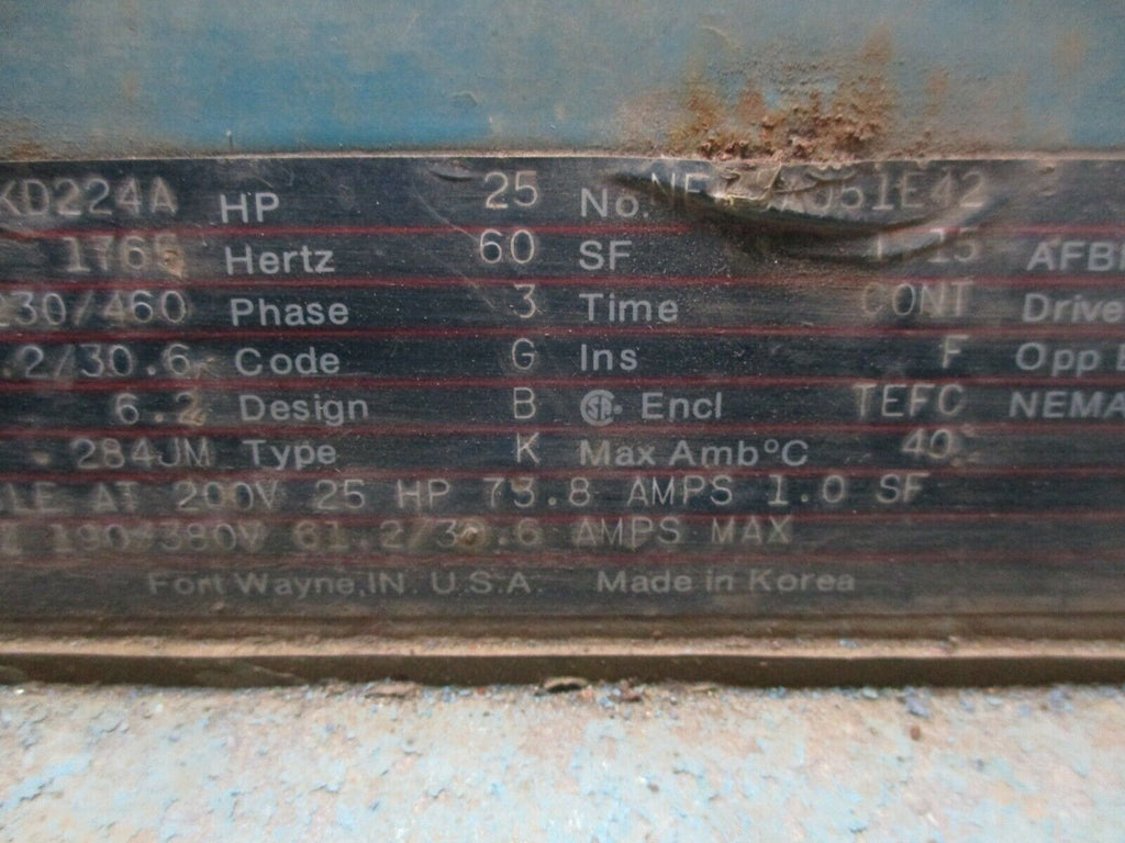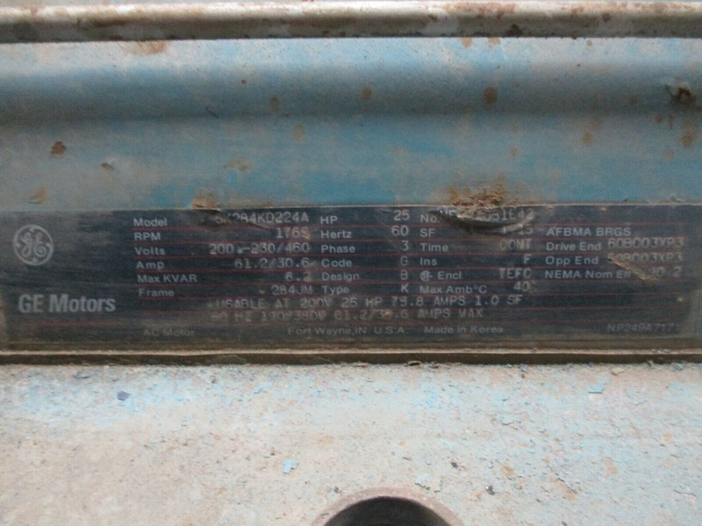 GE AC Motor 5K284KD224A 25HP 1800RPM 230/460V 61.2/30.6A TEFC ...