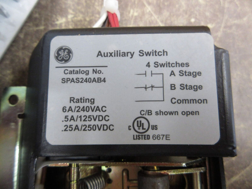 GE Auxiliary Switch SPAS240AB4 6A/240VAC 0.5A/125VDC 0.25A/250VDC Used