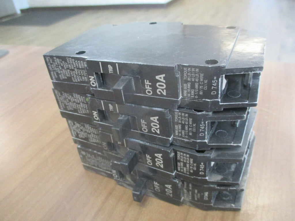 GE Bolt-On Circuit Breaker Part #: TEY120 20A 277V 1P *Lot of 4* Used LOC AB1M2-8 / AB41R1-4 / AB13D1-2 / AB11-1764/AB36G2 / AB1L2-20 / AB4M4-7 / AB8Q1-14 / AB5O1-4//AB37M1- GE Bolt-On Circuit Breaker