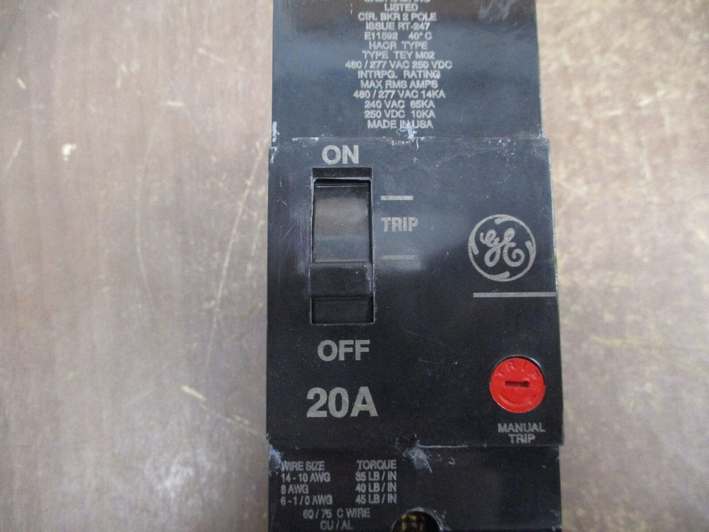 GE Bolt-On Circuit Breaker TEY220 M02 20A 480/277V 2P Used_x00...