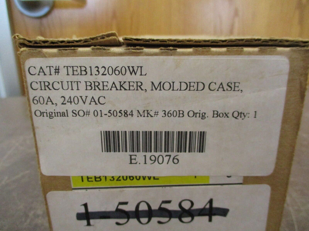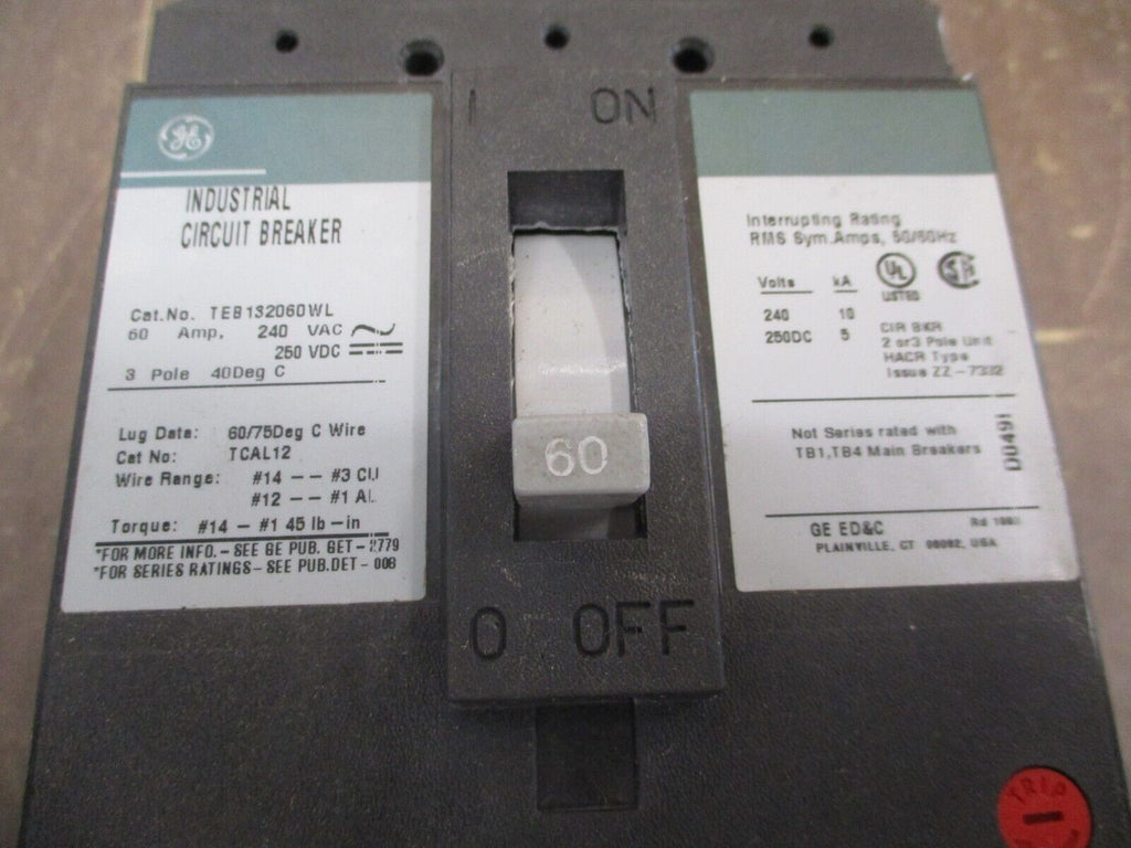 GE Circuit Breaker TEB132060WL 60A 240V 3P New Surplus