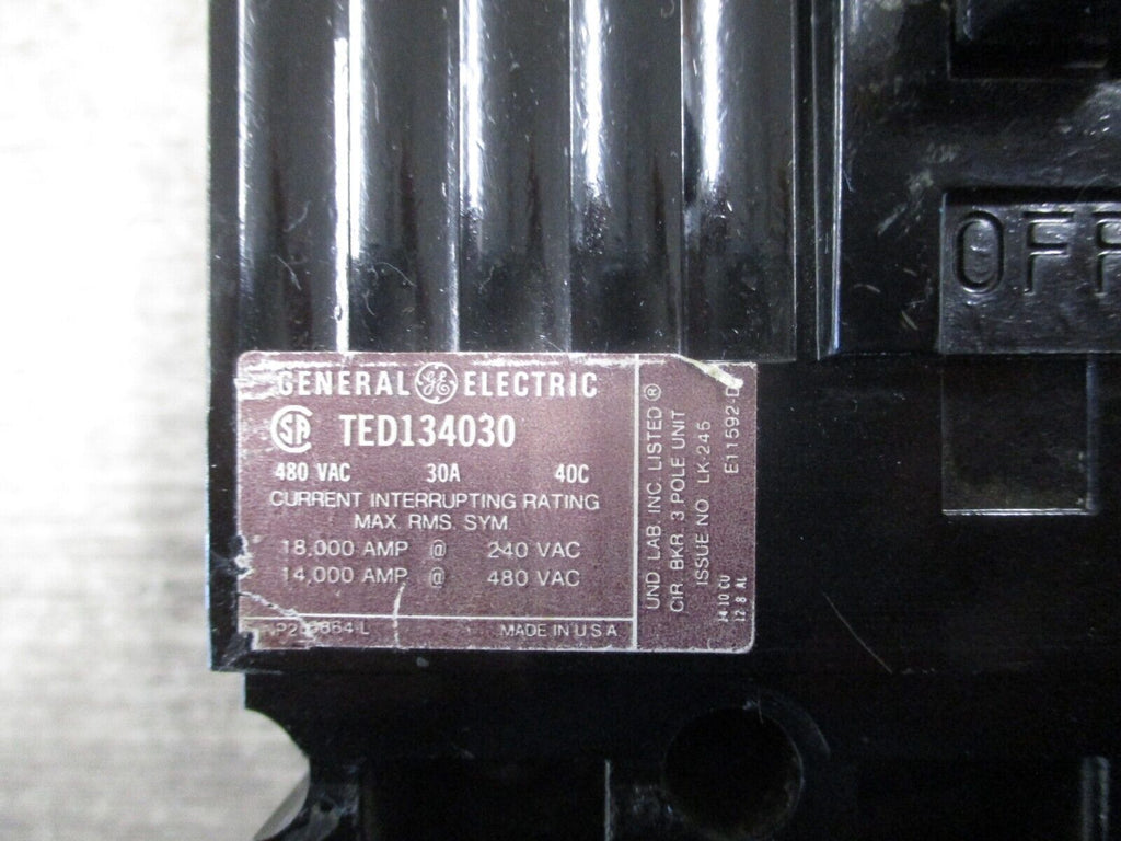 GE Circuit Breaker TED134030 480V 30A 3P Used