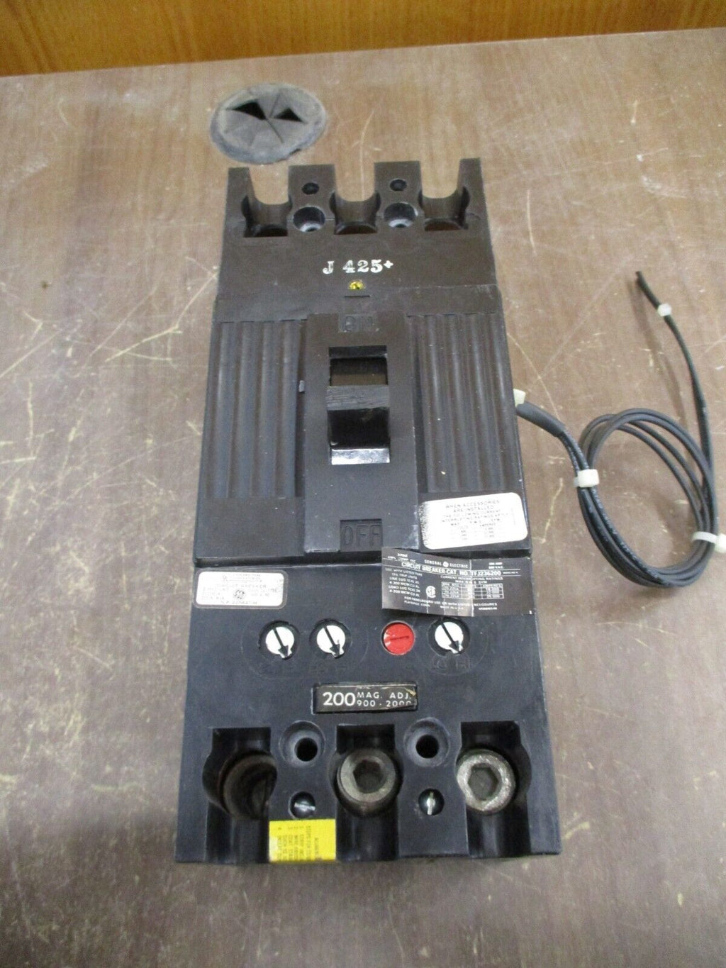 GE Circuit Breaker Part #: TFJ236200 200 A 600 V 3P w/ Shunt Trip*Missing (1) Lug Nut* Used Loc: 27C4-13- Part #: TFJ236200