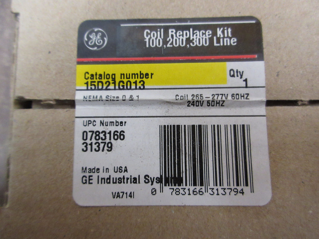 GE Coil Replace Kit Part #: 15D21G013 Nema Size 0/1 265-277V@60Hz, 240V@50Hz New Surplus Loc: 59I3-7