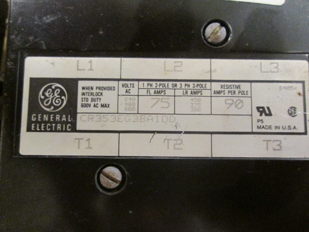 GE Contactor CR353EG3BA1DD 115-120V Coil 75A 600V. Used.