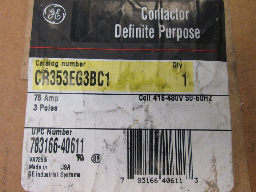 GE Contactor CR353EG3BC1 75A 416-480V Coil 50/60Hz 3P New Surp...