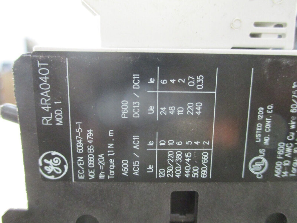 GE Contactor RL4RA040T 120V Coil w/ Aux Contact Block Used_x000D_ Condition: UsedBrand: GEMPN: RL4RA040T GE Contactor RL4RA040T 120V Coil w/ Aux Contact Block Used GE Contactor Part #: RL4RA040T 120V Coil w/ Aux Contact BlockUsedLOC: 28D2-6 GE Contactor Part #: RL4RA040T 120V Coil w/ Aux Contact Block Uséd LOC: 28D2-6