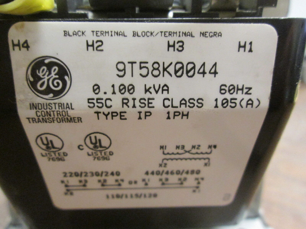 GE Control Transformer Part #: 9T58K0044 0.100KVA Pri: 240/480V Sec: 120V 1Ph Used LOC 13F4-14 / 58G4