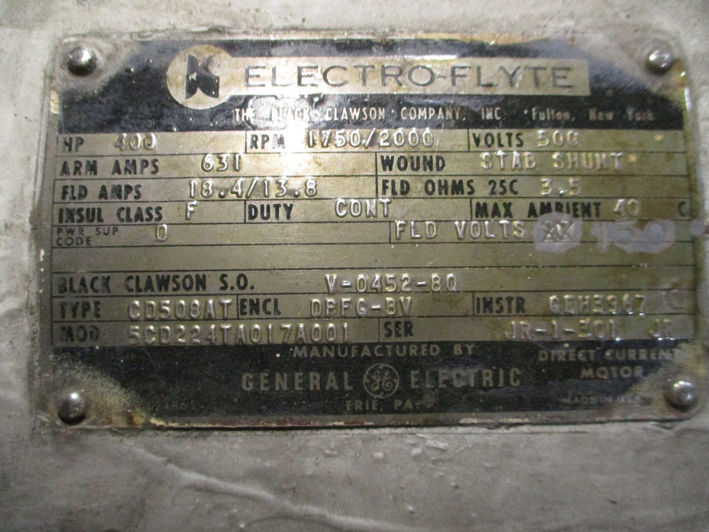 GE Current Motor CD508AT 400HP 1750/2000RPM 500V 631A Used_x00...