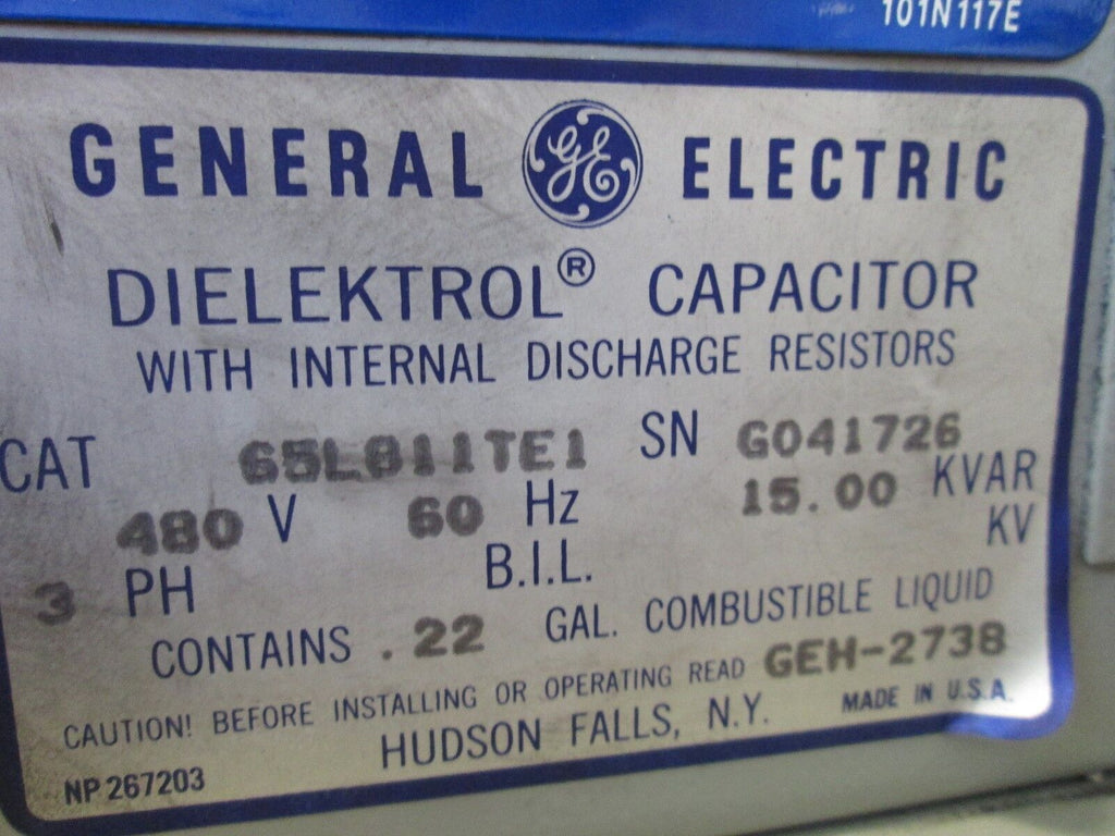 GE Dielektrol Capacitor 65L811TE1 15 KVAR 480V 60Hz 3Ph Used