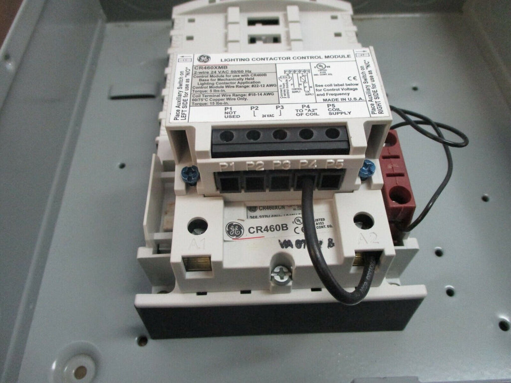 GE Enclosed Mechanically Held Lighting Contactor CR463M20BNA10A0 265-277V Coil, Condition: UsedCoil Voltage: 265-277 VType: Mechanically Held Lighting ContactorMPN: CR463M20BNA10A0Brand: GE GE Enclosed Mechanically Held Lighting Contactor CR463M20BNA10A0 265-277V Coil, GE Enclosed Mechanically Held Lighting Contactor Part #: CR463M20BNA10A0 265-277 V Coil Type 1 Enclosure w/ (2) Power Module Used Loc: 19J1-21 GE Enclosed Mechanically Held Lighting Contactor Part #: CR463M20BNA10A0 265-277 V Coil Type 1 Enclosure w/ (2) Power Module Uséd Loc: 19J1-21