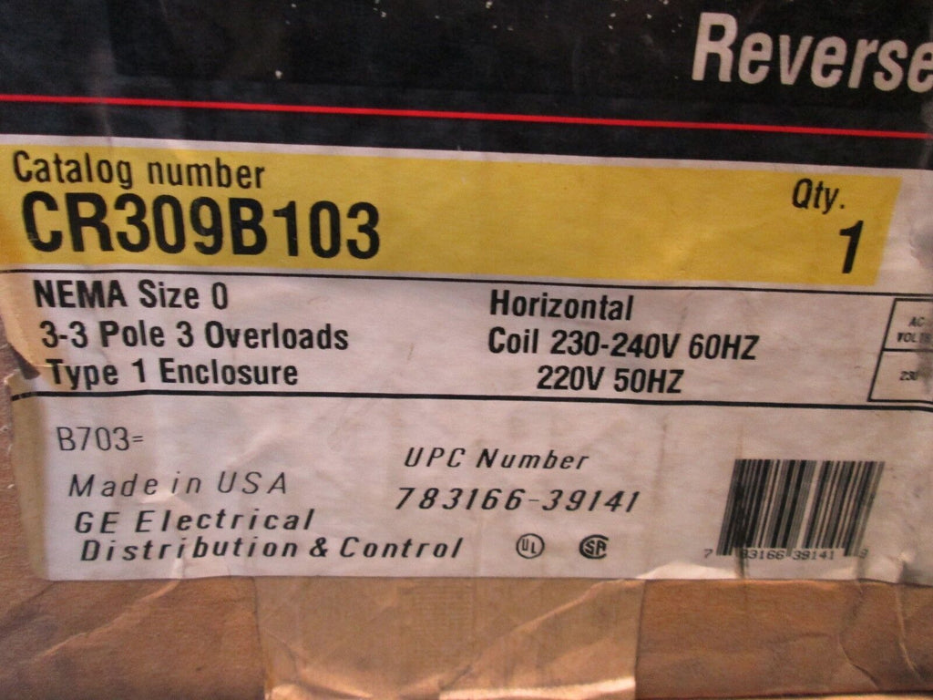 GE Enclosed Reversing Starter CR309B103 Size 0 230-240V Coil 3P Nema 1 New