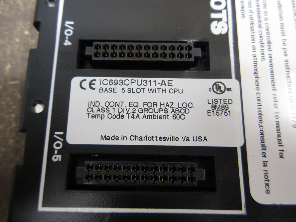 GE Fanuc 5-Slot Base w/ CPU Part #: IC693CPU311-AE *No Program Processor* Used Loc: 57F2-6