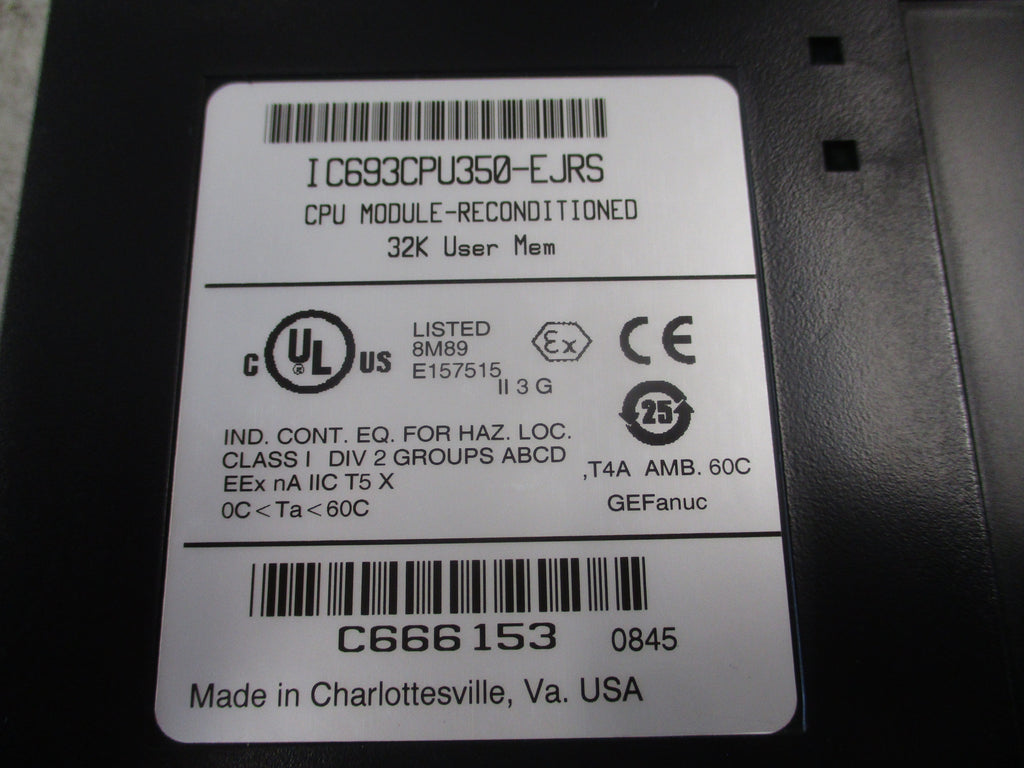 GE Fanuc CPU Module IC693CPU350-EJRS 32K User Memory Used LOC 58H4-29
