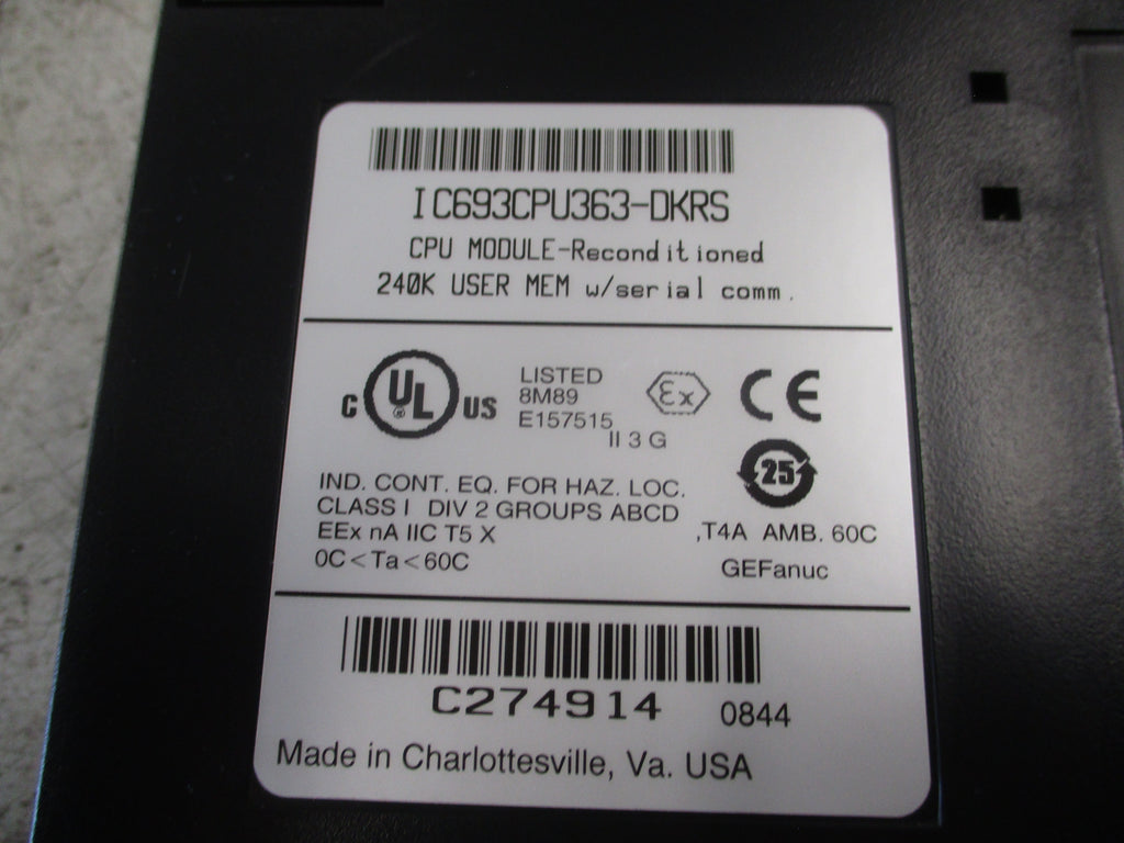GE Fanuc CPU Module IC693CPU363-DKRS 240K User Memory Serial Comm. Used LOC 58H4-30