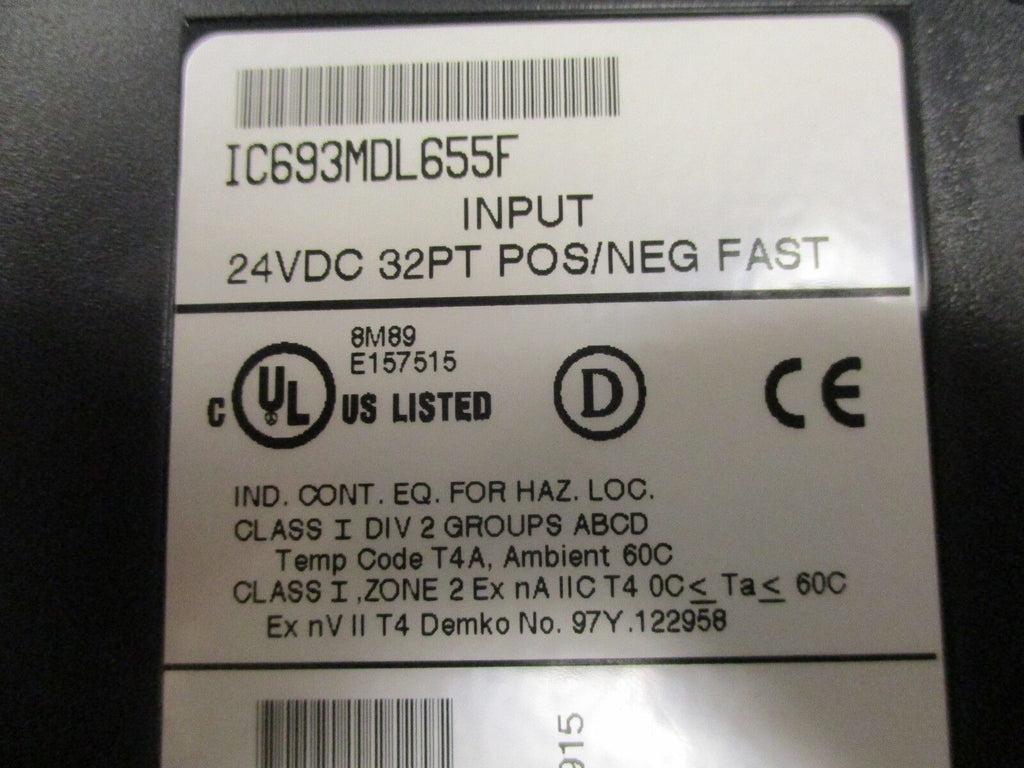 GE Fanuc Pos/Neg Fast Input Module IC693MEDL655F 24VDC 32PT 7.0mA/PT Used_x000D_ Condition: UsedBrand: GE FanucMPN: IC693MEDL655F GE Fanuc Pos/Neg Fast Input Module IC693MEDL655F 24VDC 32PT 7.0mA/PT Used GE Fanuc Pos/Neg Fast Input ModulePart #: IC693MEDL655F 24VDC 32PT 7.0mA/PT UsedLOC 3N5-1 GE Fanuc Pos/Neg Fast Input Module Part #: IC693MEDL655F 24VDC 32PT 7.0mA/PT Uséd LOC 3N5-1