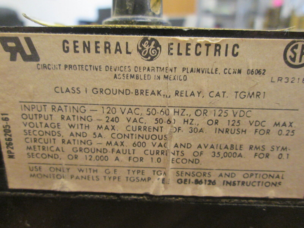 GE Ground Break System Part #: TGM0008 / TGMR1 / TGSMP Sensor:600ARelay:Delay: 0-1 secPickup: 2-12APanel: 120VACUsedLOC 17D1-2- Part #: TGM0008 / TGMR1 / TGSMP