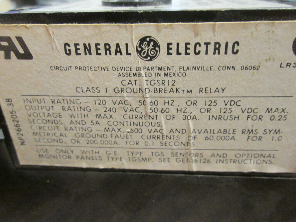 GE Ground Break SystemPart #: TGS0408/TGSR12/TGSMP Sensor: 4000A4x8" WindowRelay:Delay: 0-1secPickup: 100-1200APanel:120VACUsedLOC AB9D3-17 / AB12E2- Part #: TGS0408/TGSR12/TGSMP