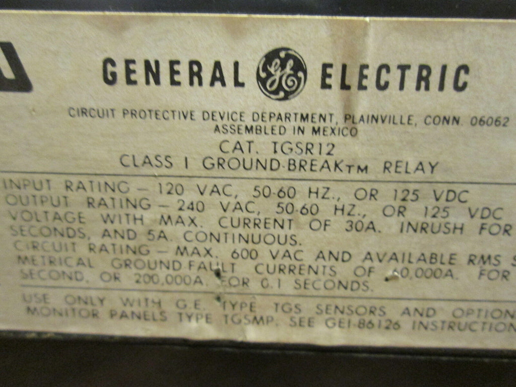 GE Ground Break System Part #: TSG0818 Mod 2/ TGSR12/TGSMPSensor:3000A8x18" WindowRelay:Delay: 0-1 secPickup: 100-1200APanel: 120VACUsedLOC AB9D3-15 / AB9E2- Part #: TSG0818 Mod 2/ TGSR12/TGSMP