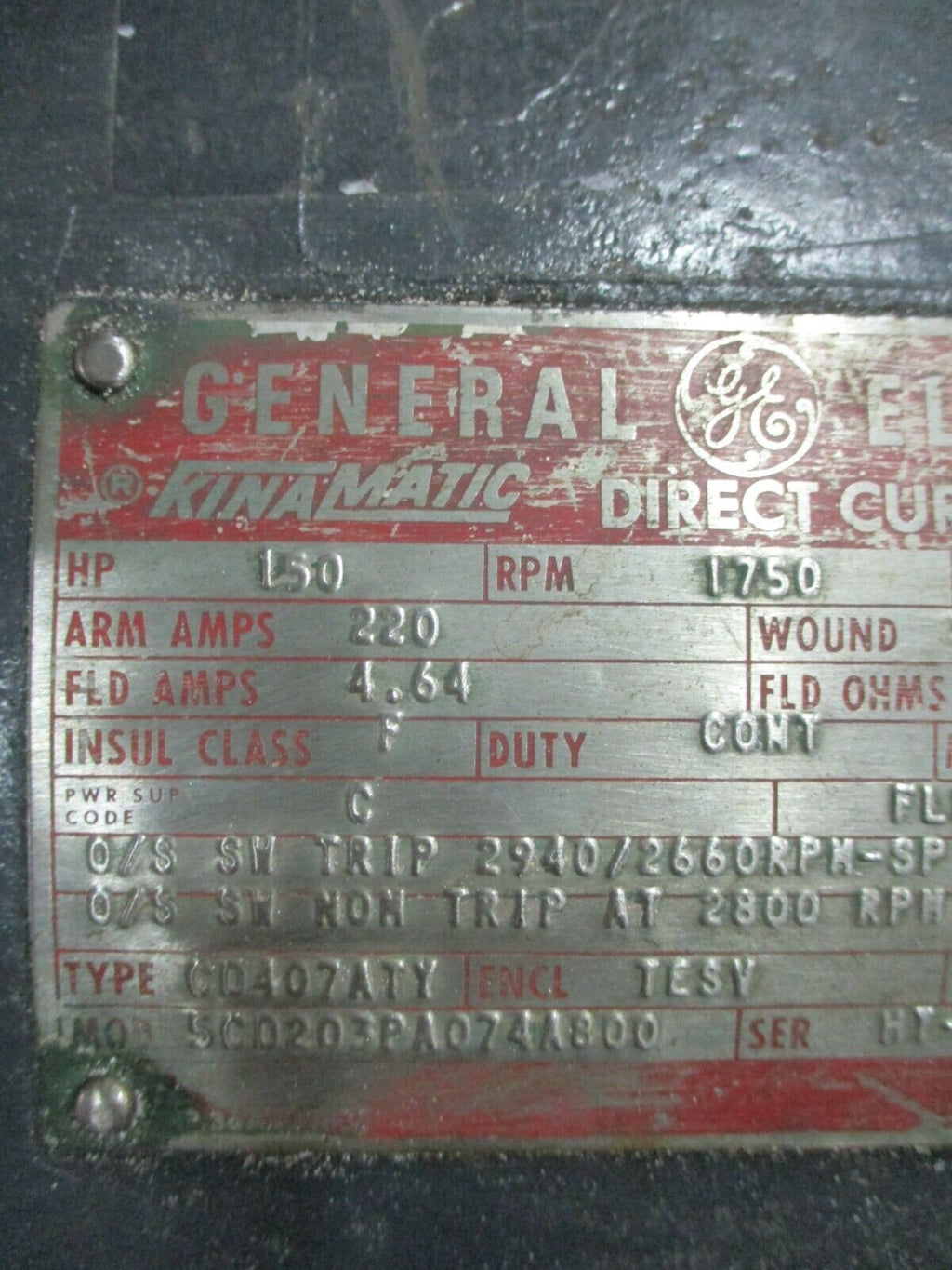 GE Kinamatic Type CD407ATY DC Motor 5CD203PA074A800 150HP 1800RPM Used