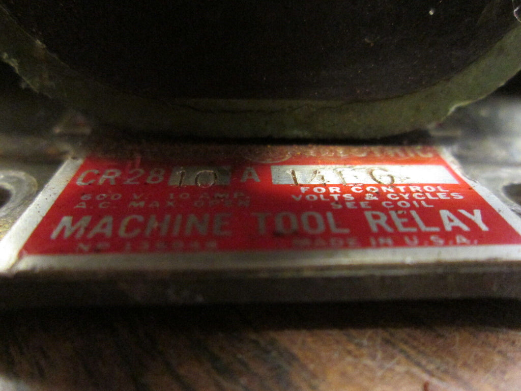 GE Machine Tool Relay CR2810A14EG 10A 600V 115V Coil Used Condition: UsedBrand: GEMPN: CR2810A14EG GE Machine Tool Relay CR2810A14EG 10A 600V 115V Coil Used GE Machine Tool Relay Part #: CR2810A14EG 10A 600V 115V Coil UsedLOC 12C3-20 GE Machine Tool Relay Part #: CR2810A14EG 10A 600V 115V Coil Uséd LOC 12C3-20