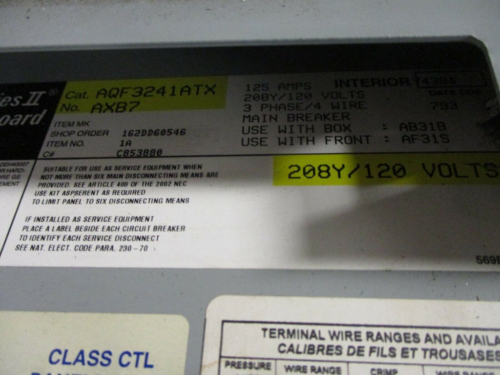 GE Main Breaker Circuit Breaker Panel AQF3241ATX 100A Main 208Y/120V 3Ph 4W Used