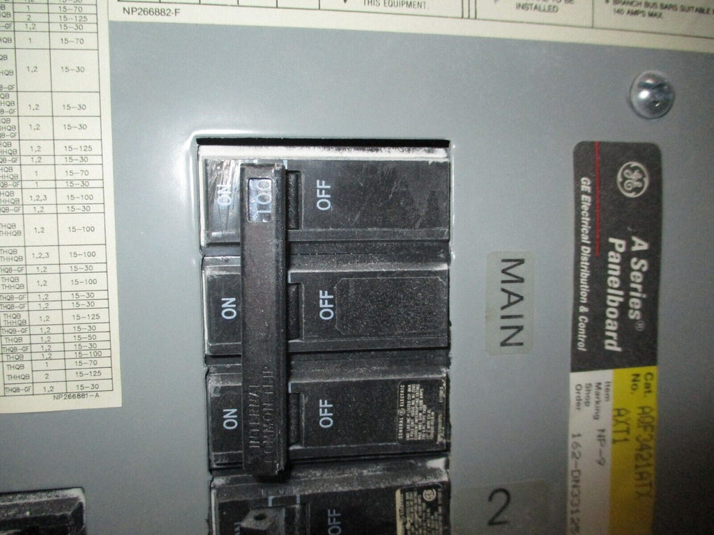GE Main Breaker Circuit Breaker Panel Part #: AQF3421ATX 125 A Max100 A Main 208/120 V 3Ph 4W Breakers:(4) 20A 2P(34) 20A 1P*Missing (2) Cover Screws*42-SlotUsed Loc: AB20R2-8- Part #: AQF3421ATX