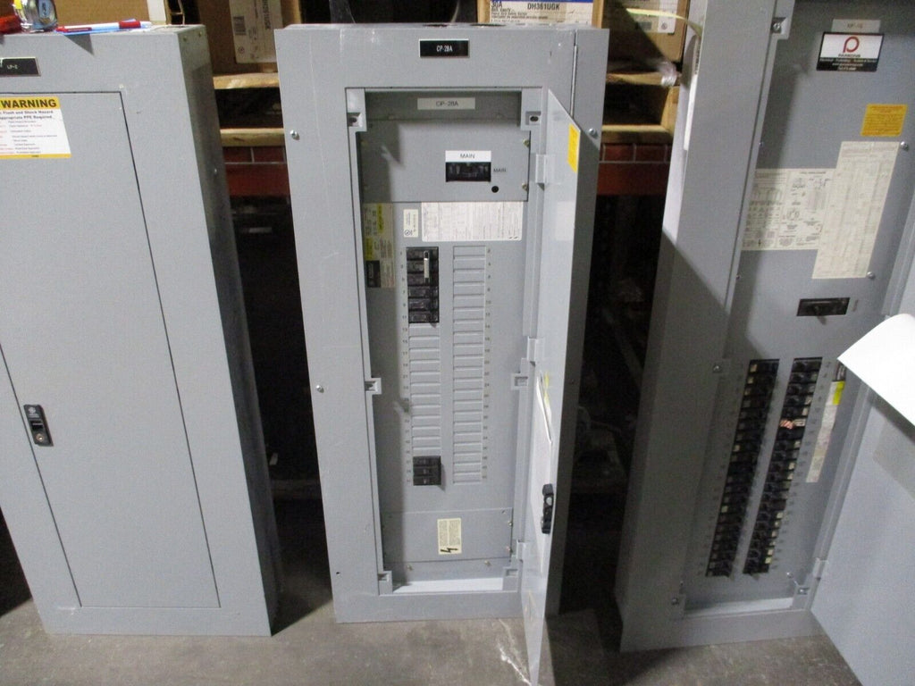 GE Main Breaker Circuit Breaker Panel Part #: AQU3422RCX 225 A Max225 A Main 208/120V3Ph4WBreakers:(1) 100A 3P(1) 20A 3P(3) 20A 1P42-Slot*Missing (1) Cover Screw*Dims: 50" x 21" x 7"Weighs: 102 LBSUsed Loc: AB20P1-21- Part #: AQU3422RCX