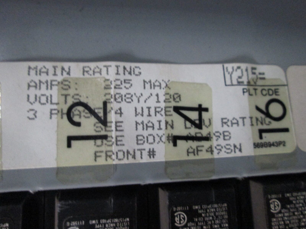 GE Main Circuit Breaker Panel AQF3422ATX AXS5B4 225A 208Y/120V 225A Main Breaker