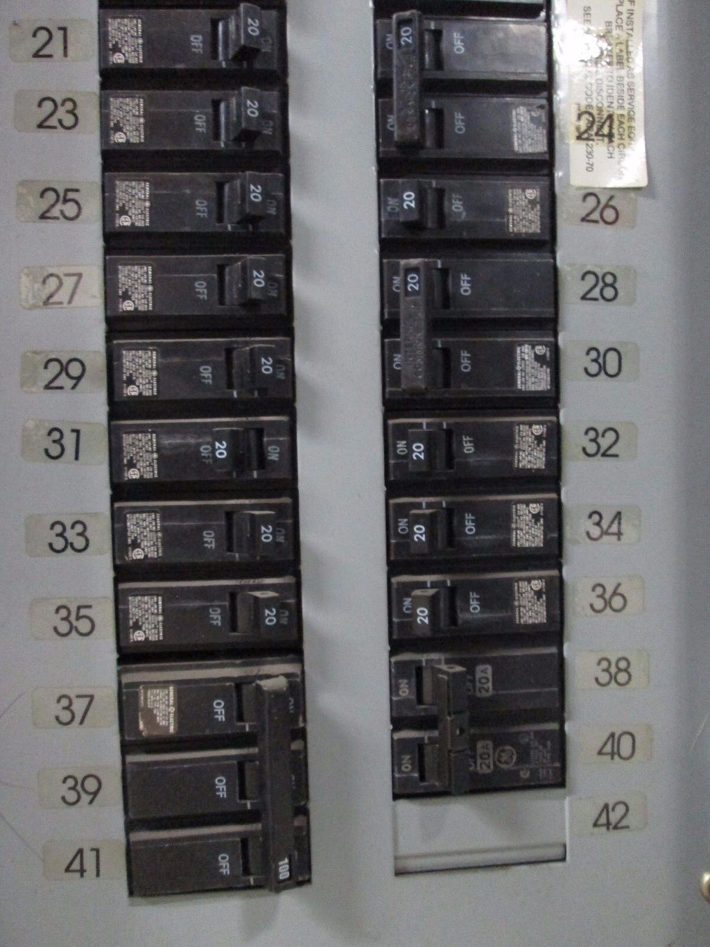 Model: Main Circuit Breaker Panel