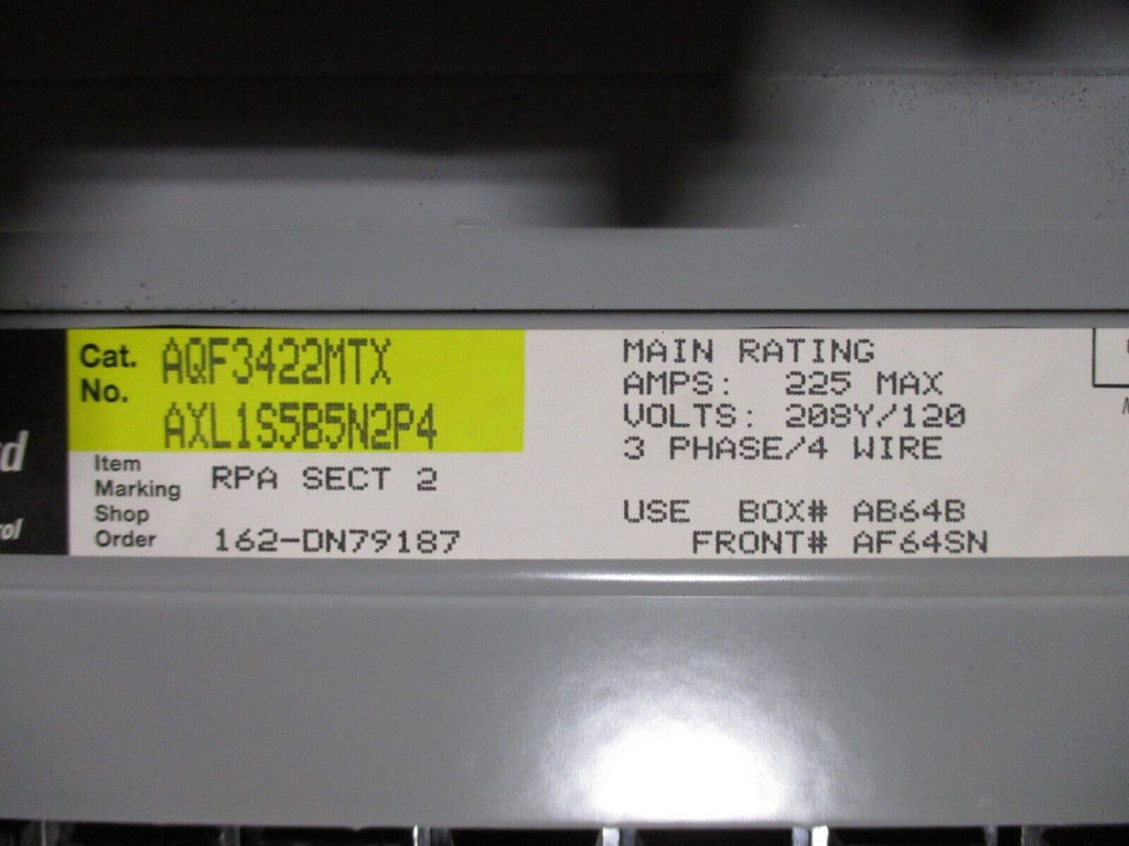 GE Main Lug Breaker Panel AQF3422MTX 225A Max 208/120V 3Ph 4W 42-Slot Used