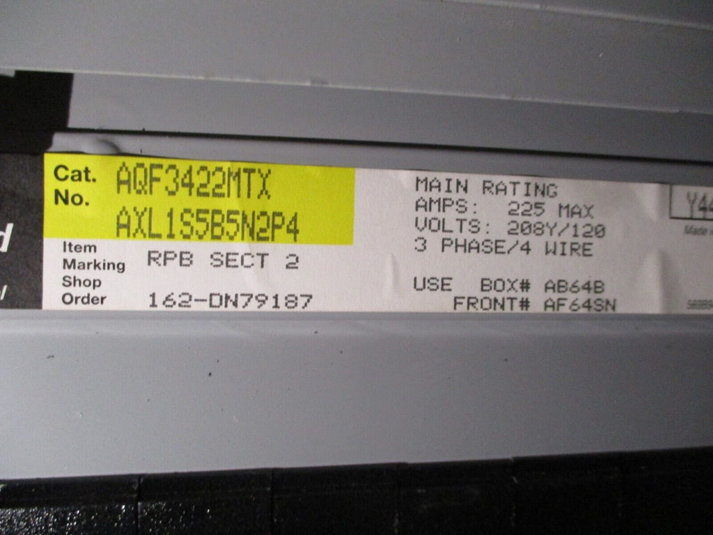 GE Main Lug Breaker Panel AQF3422MTX 225A Max 208/120V 3Ph 4W 42-Slot Used