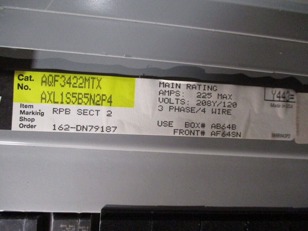 GE Main Lug Breaker Panel AQF3422MTX 225A Max 208/120V 3Ph 4W 42-Slot Used