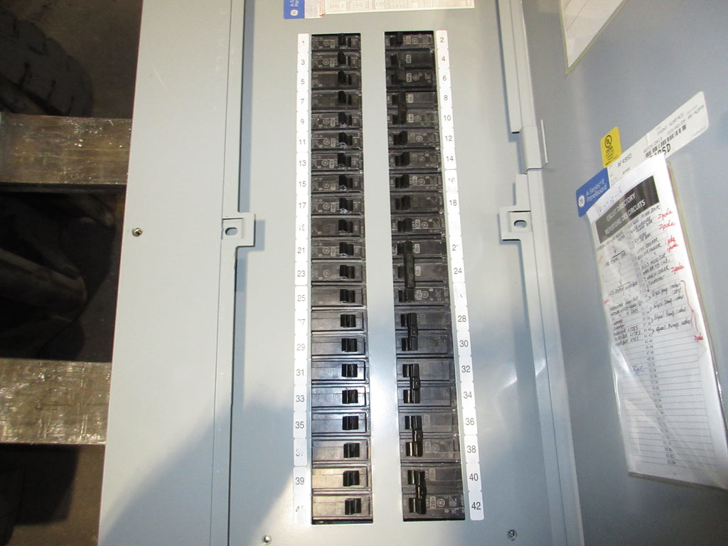GE Main Lug Breaker Panel Part #: AQF3422MTX AXT1B7 225A Max 208Y/120V 3Ph 4W 42-Slot Breakers: (1) 20A 3P (1) 50A 2P (1) 30A 2P (4) 20A 2P (27) 20A 1P *Missing (4) Cover Screws* *No Interior Screws* Used Loc: AB20S1-7