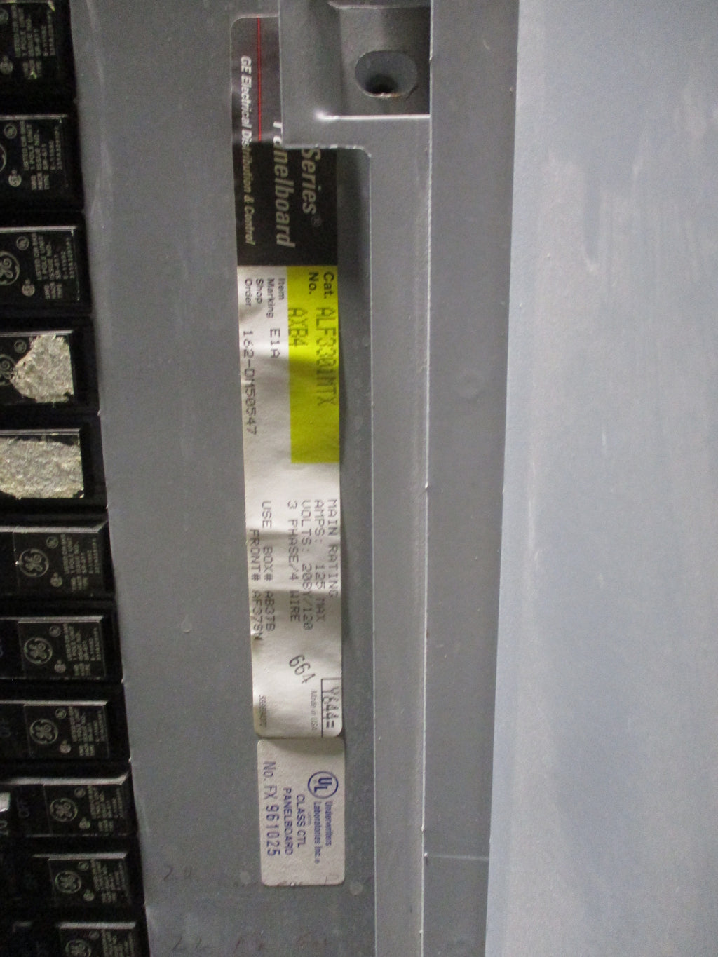 GE Main Lug Circuit Breaker Panel ALF3301MTX 208Y/120V 125A Max 3Ph 4W