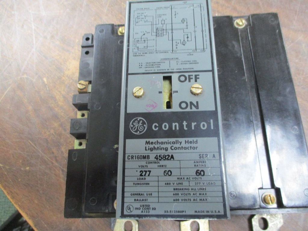 GE Mechanically Held Lighting Contactor CR160MB4582A 60A 600V Control:277V Used Condition: UsedMPN: CR160MB4582ABrand: GE GE Mechanically Held Lighting Contactor CR160MB4582A 60A 600V Control:277V Used GE Mechanically Held Lighting Contactor Part #: CR160MB4582A 60A 600V Control: 277V UsedLOC 18E4-37 GE Mechanically Held Lighting Contactor Part #: CR160MB4582A 60A 600V Control: 277V Uséd LOC 18E4-37