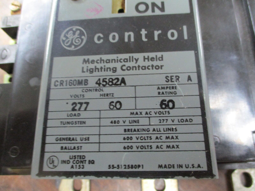 GE Mechanically Held Lighting Contactor CR160MB4582A 60A 600V Control:277V Used