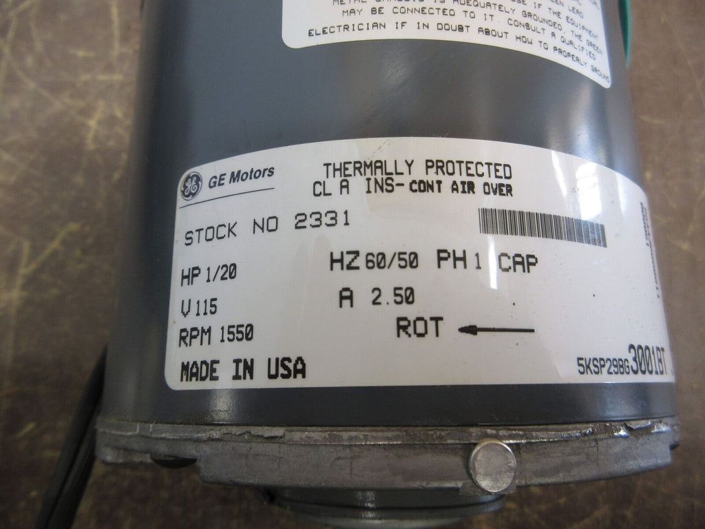 GE Motor 2331 1/20HP 1600RPM 2.5A 115V Used GE Motor Part #: 2331 1/20 HP 1550 RPM 2.5 A 115 V Used Loc: 59F1-7